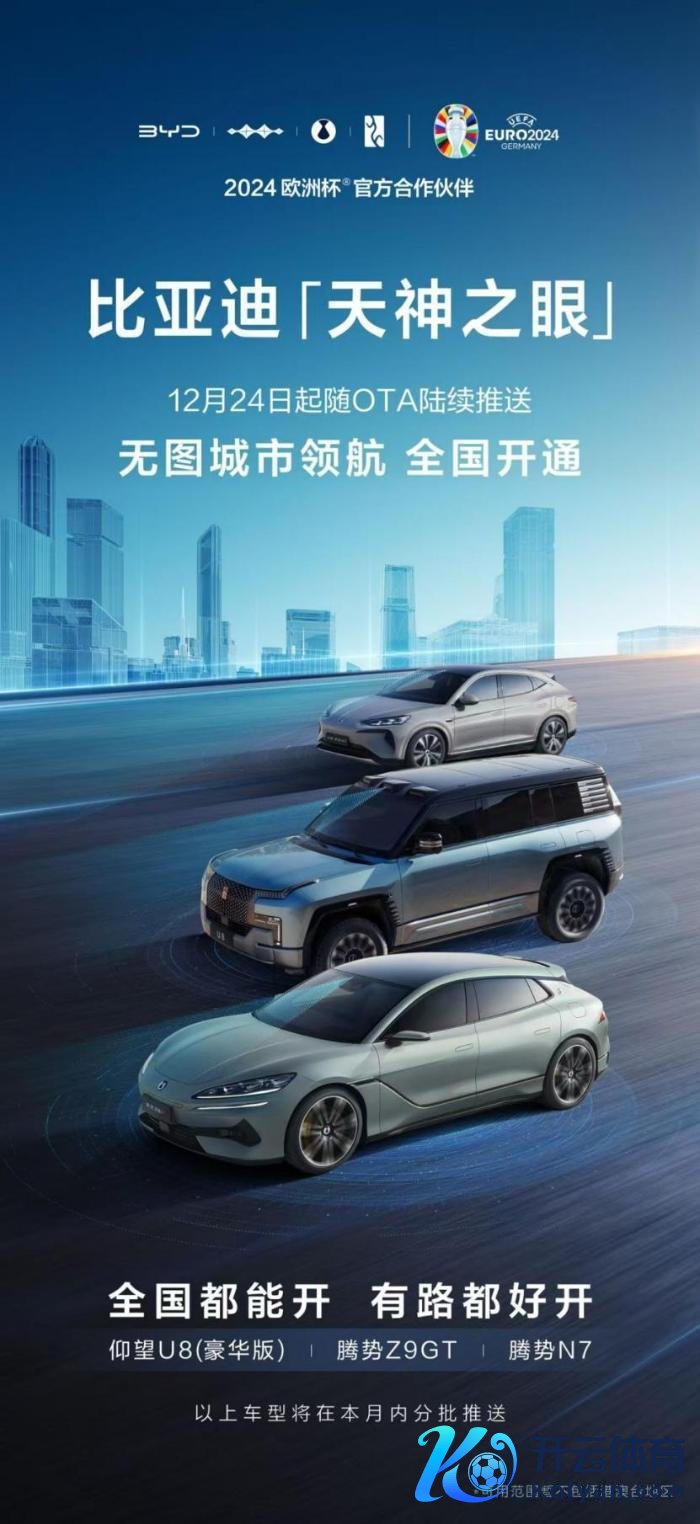 12月24日,比亚迪文告,高阶智能驾驶赞助系统“天使之眼”在宇宙范围内淡雅怒放无图城市领航(CNOA)功能,可已毕“宇宙皆能开,有路皆好开”,不管是城区谈路,如故乡间小径,皆能为用户带来更安全、更方便的智能驾驶出行体验。该功能将随具体车型OTA陆续推送。