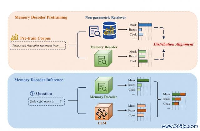 好好好,不卖关子了,正本这是来自上海交大、上海 AI Lab 等机构的方案东说念主员建议的一个名为" Memory Decoder "的预磨砺挂念模块——