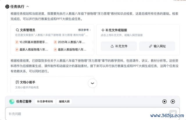 它在实施任务过程中会基于百度文库、全网等进行深度搜索,搜索出来的参考尊府皆支柱删减修改。