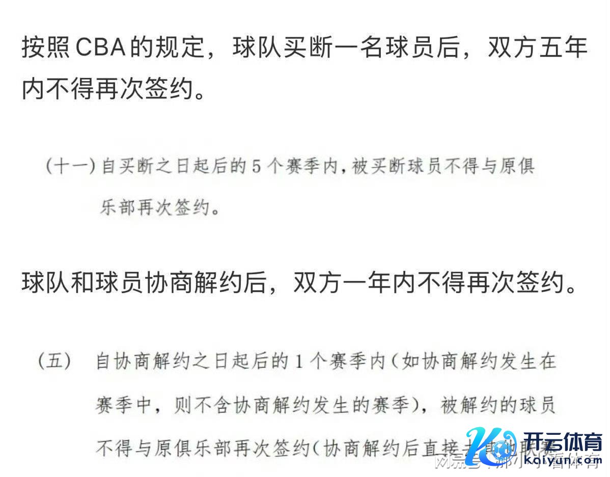 因为问题就出在这里!CBA有条规矩是,俱乐部与球员出现买断协议的情况之后,两边五年之内不成再次签约,后头还有一个括号,内部说的是若是两边是在赛季中协商解约,则当赛季不含在内。
