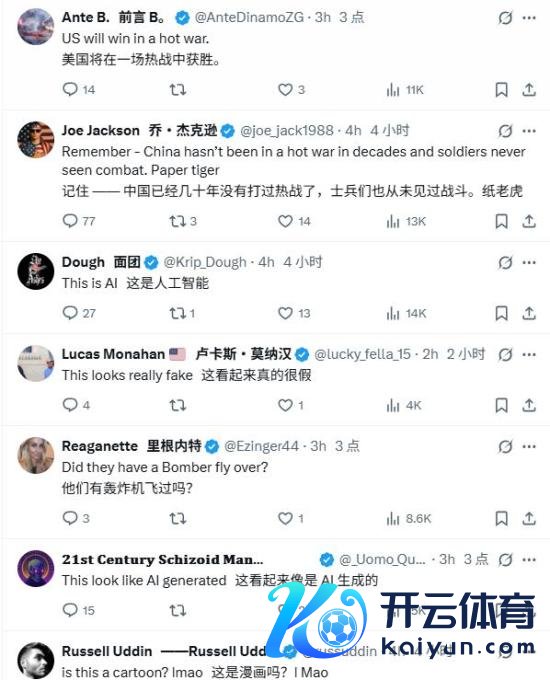 相比兴味的是好多好意思国人人的反映,他们致使连中国军事技巧的存在都顺利否定,把一切都归结于伪善宣传致使AI。比如你在X上支吾一搜,就能看到满屏这么的挑剔: