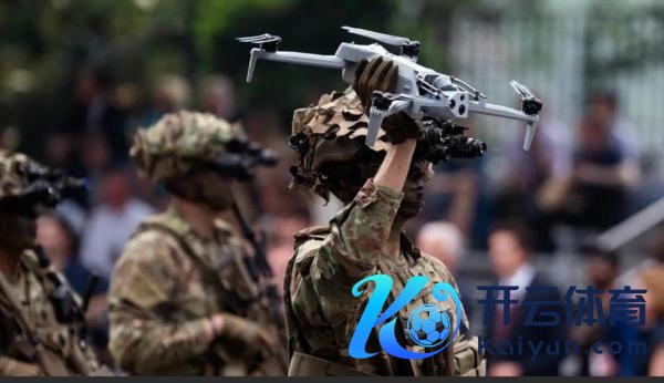 本年6月14日特朗普诞辰本日,在华盛顿特区投入检阅的好意思国士兵手持微型无东谈主机 外媒