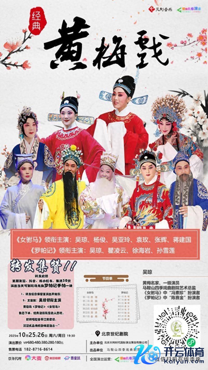 马鞍山四季戏曲剧院的九位黄梅戏名家,将于10月25日至26日携典藏版《女驸马》与《罗帕记》登陆北京世纪剧院,为不雅众献上一场承载50载艺术情感、兼具传承厚度与商场口碑的戏曲盛宴。